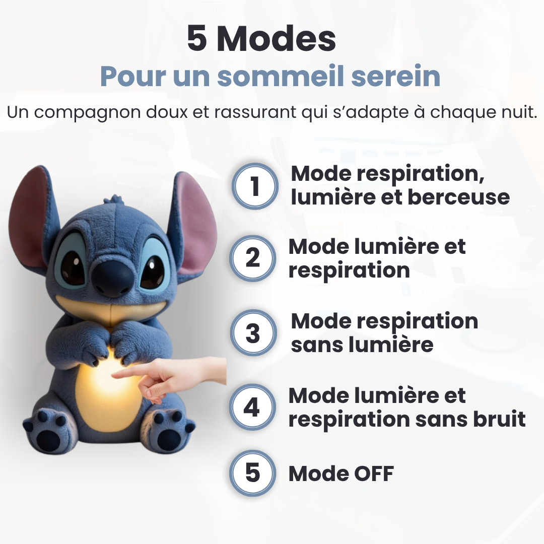 ZeniStitch simule un mouvement respiratoire doux et régulier, imitant la respiration humaine pour apaiser l’enfant naturellement et favoriser l’endormissement.